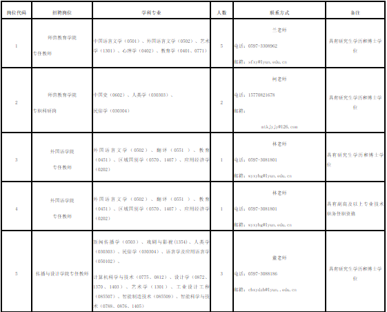 招聘信息在福建省人力资源和社会保障厅门户网站、福建省就业网、龙岩学院人事处网站公开发布。
