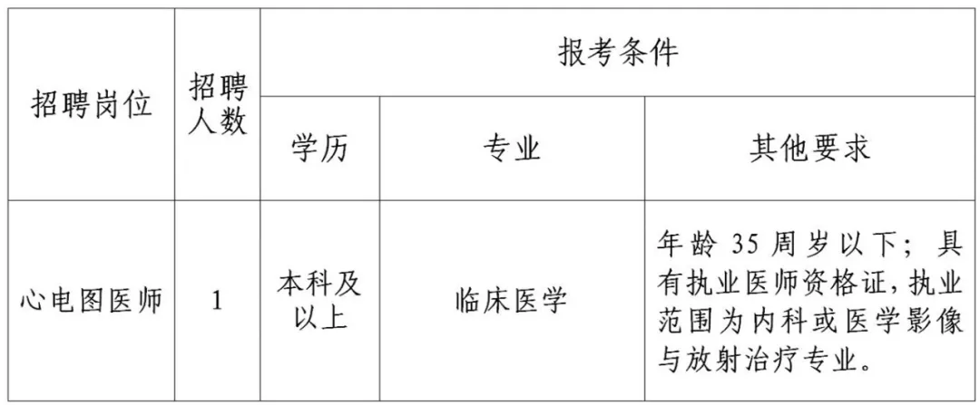 现因医院工作需要,拟招聘心电图医师岗位编外聘用人员1人,具体如下: